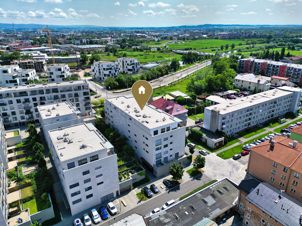 Jednou z největších předností této nemovitosti je částečně krytá střešní terasa, která nabízí dech beroucí výhled na město i když na ni odnikud není vidět. Poskytuje tak venkovní prostor s naprostým soukromím, ideální pro relaxaci nebo příjemné posezení s rodinou a přáteli.