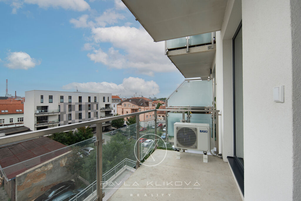 REZERVACE! Pokud chcete bydlet v centru města a přesto mít na dosah přírodu a klid. Pronájem světlého, klimatizovaného bytu 2+kk s balkonem v novostavbě bytového domu v Plzni, O.Beníškové. Byt má výměru 64 m2, sestává se z chodby, ložnice, obývacího prostoru s kuchyňským koutem, šatny (lze využít jako pracovnu, apod.), koupelnou se sprch.koutem a nábytkem a balkonu. Všechna okna včetně balkonu jsou do vnitrobloku.