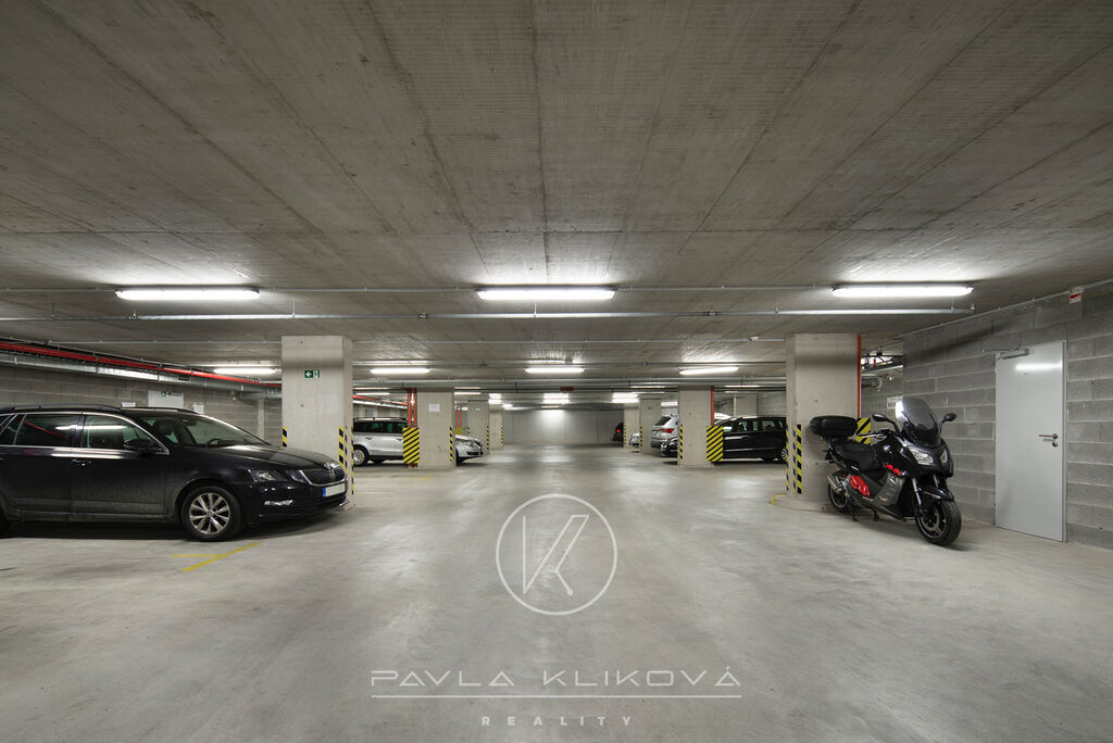 K bytu patří parkovací místo v kryté garáži a prostorný sklep.