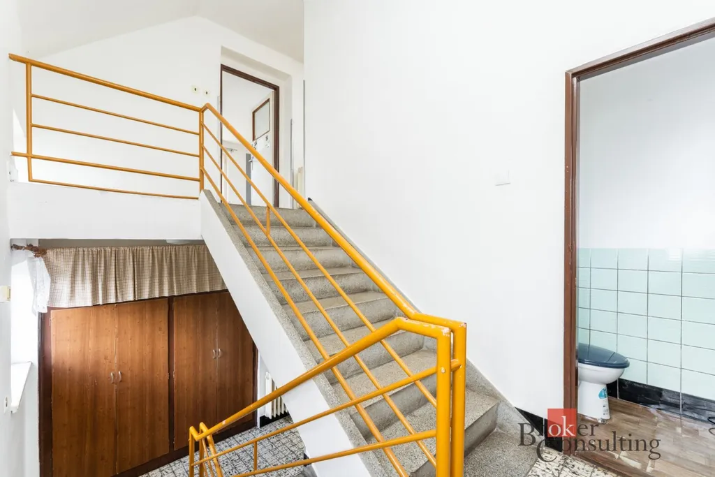 V mezipatře je umístěna samostatná toaleta. V horním patře se nachází dva další pokoje a půda, která může posloužit k úložným účelům nebo být upravena podle potřeb nového majitele na další pokoj.