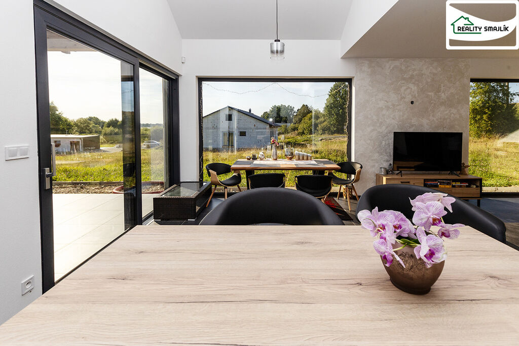 Exkluzivně nabízíme moderní novostavbu rodinného domu typu bungalov - 3+KK s terasou a pozemkem o výměře 854 m2 v klidné části obce Okrouhlá. Dům je zařízen dle fotografií, nejedná se o vizualizaci. Dům je jednopodlažní, uspokojující nárok 1-4 členné rodiny (kuchyň propojená s obývacím pokojem se vstupem na terasu, 2 samostatné pokoje, koupelna s WC, předsíň + půda k dalšímu využití). Trendem moderního bydlení v rodinném domě je propojení interiéru se zahradou. Úžasné výhledy nejen na přehradu nabízí instalované posuvné dveřní systémy. Velké moderní prosklené plochy pustí do interiéru množství světla a navíc se pohodlně dostanete na terasu a zahradu. Kuchyňská linka dělaná na míru (SRN) vč. kvalitních spotřebičů (myčka, trouba, el. varná deska, digestoř, vinotéka) v ceně 500.000 Kč. Ostatní vybavení lze odkoupit po domluvě - tj. sedací souprava, ložnice, vestavěné skříně atd. zánovní, lze doložit. Podlahy - kvalitní dlažba, podlahové vytápění, tepelné čerpadlo zn. IVT vč. ohřevu vody. Zabezpečovací systém JABLOTRON a kamerový systém je součástí. Betonová retenční nádrž o objemu 5 m3. Doporučuji náročným klientům hledající bydlení v blízkosti přehrady. Vážným zájemcům poskytneme další informace a zrealizujeme prohlídku.