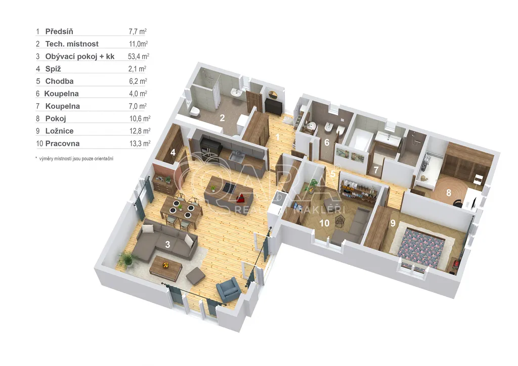 Dům si můžete celý prohlídnout v 3D prohlídce, stačí kliknout na fotku, kde je napsáno spustit prohlídku. Pokud vám to nepůjde nebo realitní server nepodporuje, napište, pošlu rád odkaz.