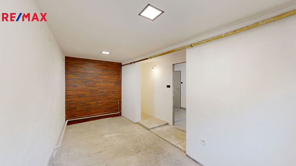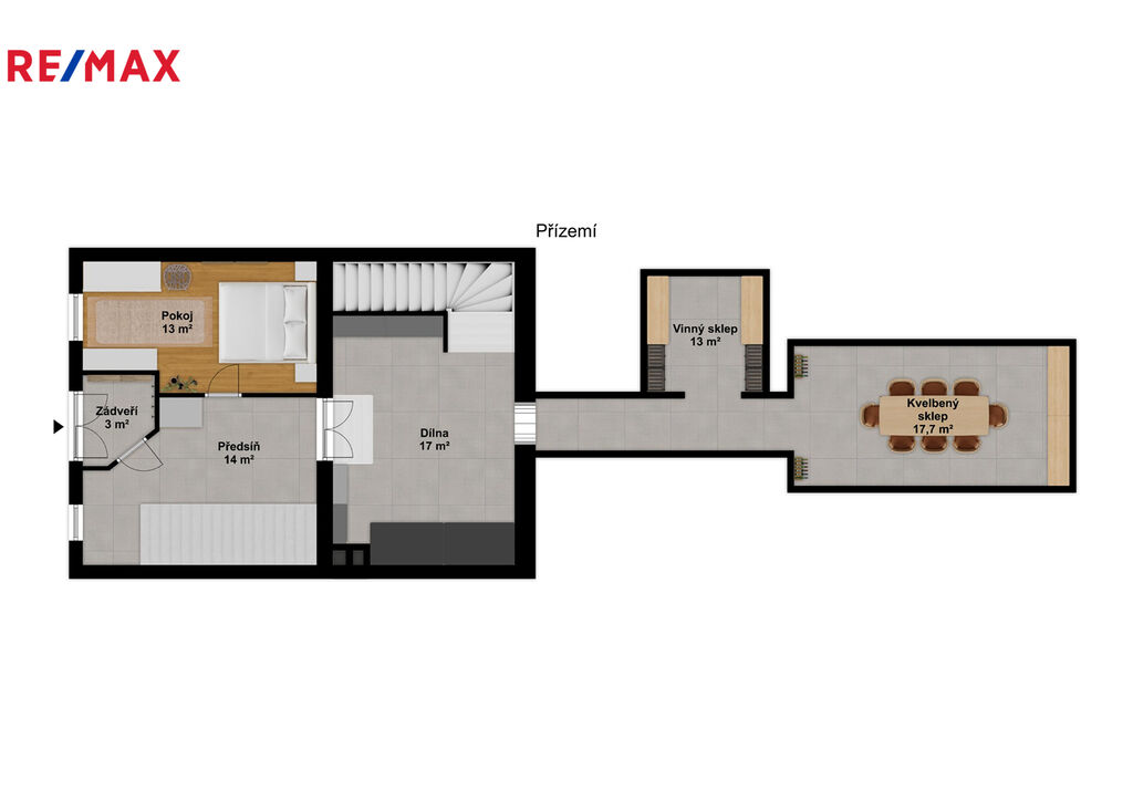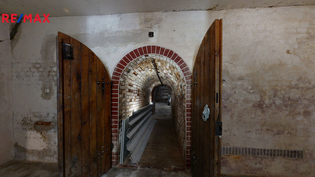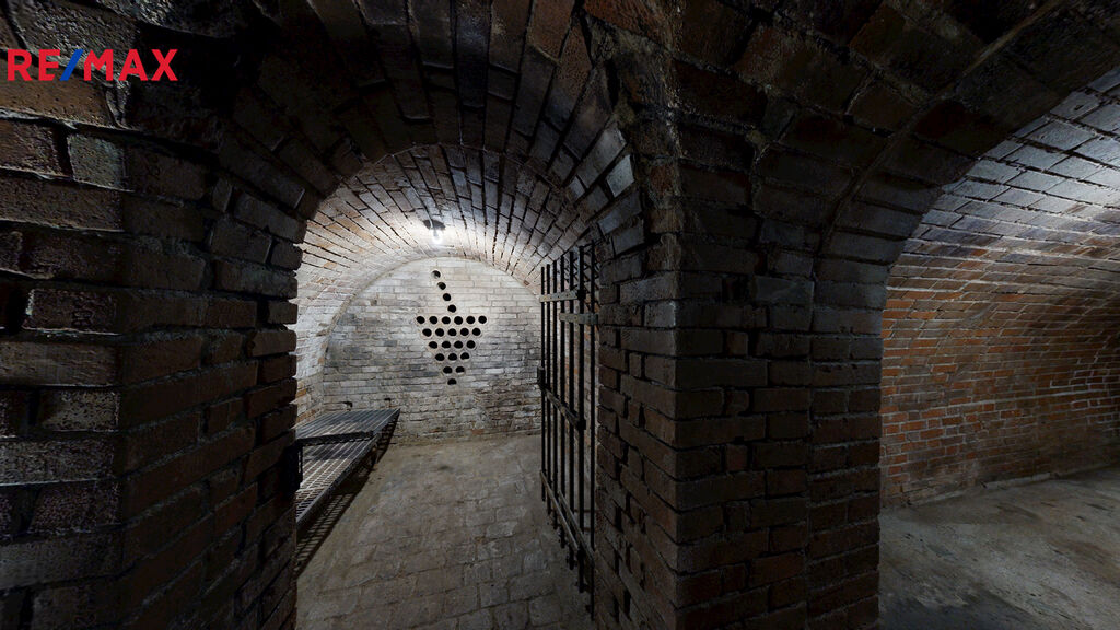 Zádveří 3 m2, pokoj 13 m2, předsíň 14 m2, nebytový prostor 17 m2, se vstupem do 3 sklepů ( klasický o výměře 35 m2, vinný 13 m2 a kvelbený sklep 17 m2).