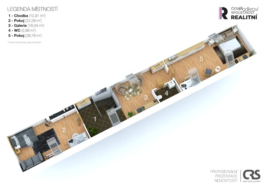 + Podkroví 83 m2, - vinylové podlahy, toaleta, spousta místa na zázemí