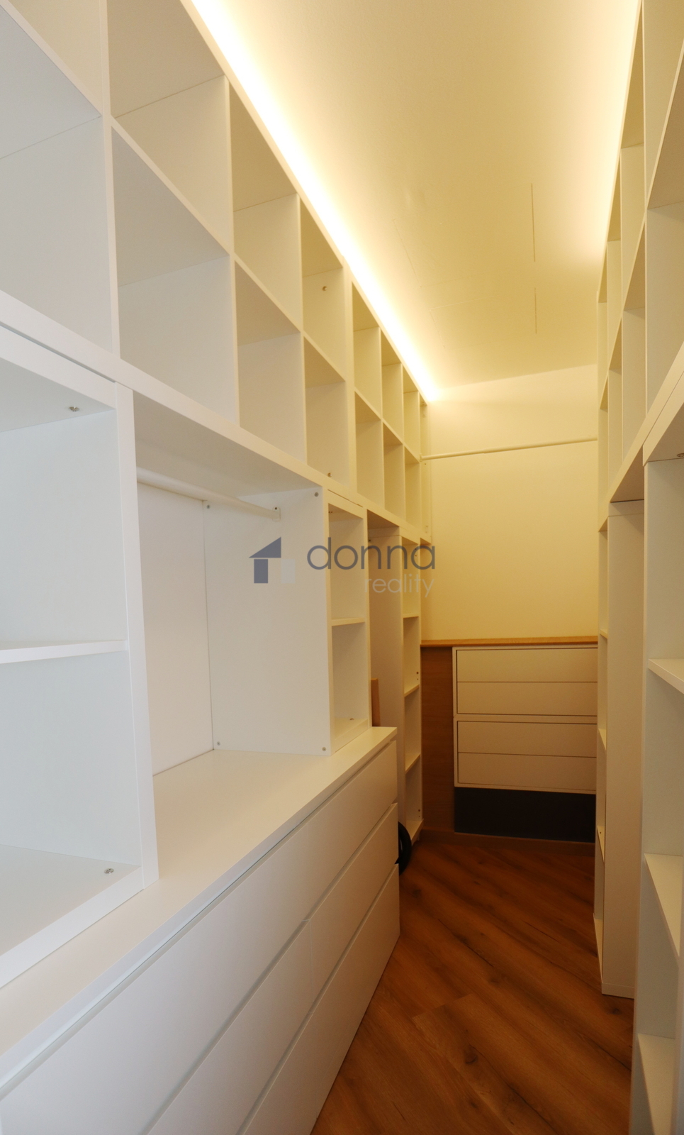 Je z větší části vybavený novým nábytkem. Součástí vybavení je postel (bez matrací), sedací souprava, jídelní stůl a židle, pračka, vestavěné skříně ve vstupní chodbě, samostatná šatna, koupelna a WC, s úložným prostorem a další.