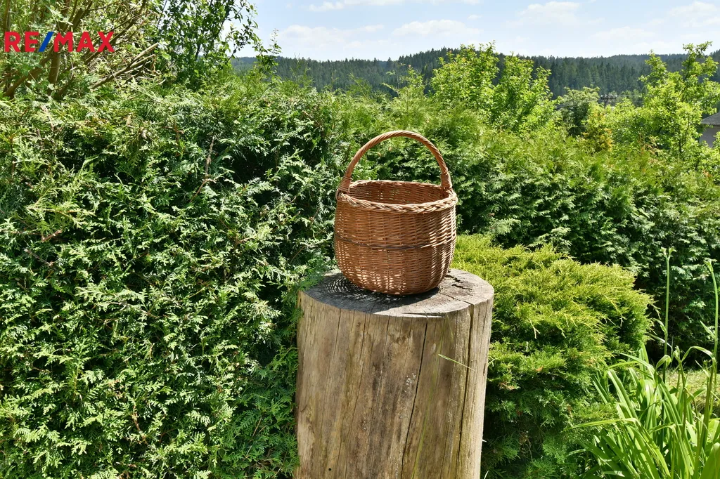 Na zahradě jsou okrasné dřeviny a ovocné stromy. Za domem je přístřešek na dřevo či zahradní náčiní. Navazující pozemek o rozloze 3 849 m² je využíván jako louka. Další možnosti – k pěstování, chovu zvířat, rekreaci či pronájmu.