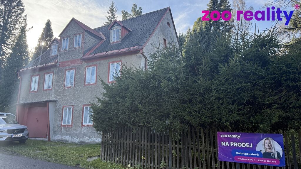 Nabízíme k prodeji dům s číslem evidenčním, vedený na katastru nemovitostí jako rodinná rekreace v Krušných horách. Dům je podsklepený, je zde dílna s garáží na jedno střední osobní vozidlo a sklepy. V patře je předsíň, kuchyně s kamny na vaření, obývací pokoj s krbovými kamny, ložnice, samostatné WC a koupelna se sedací vanou a umyvadlem. Do podkroví jdeme dřevěnými schody, kde se nalézají tři pokoje, čtyři komory, lze využít i půda. Zahrada je oplocená, svažitá, je zde zahradní domek s posezením. Dům je v původním zachovalém stavu, zůstane zařízen. V domě jsou nové rozvody v mědi. Více info u makléře.