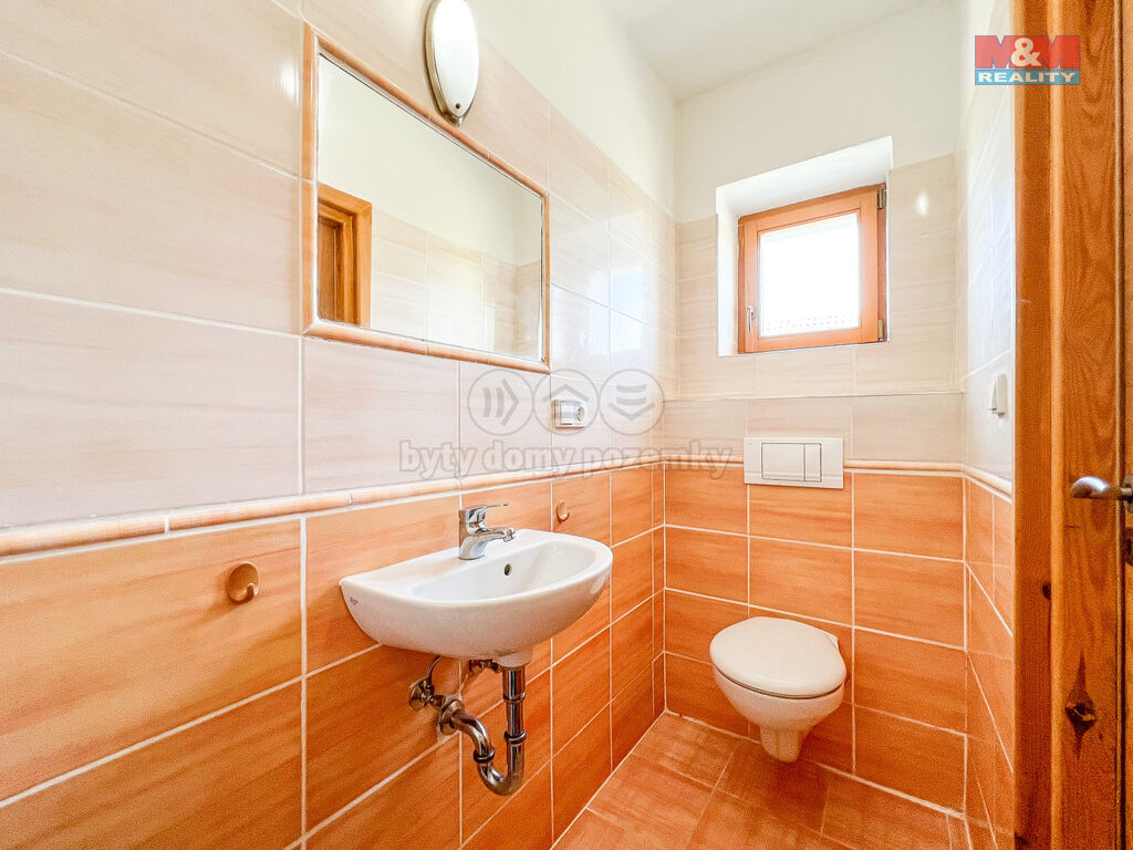 Na pozemku stojí samostatný menší domek, ve kterém je další apartmán s kuchyní, obývací částí a ložnicí v patře.