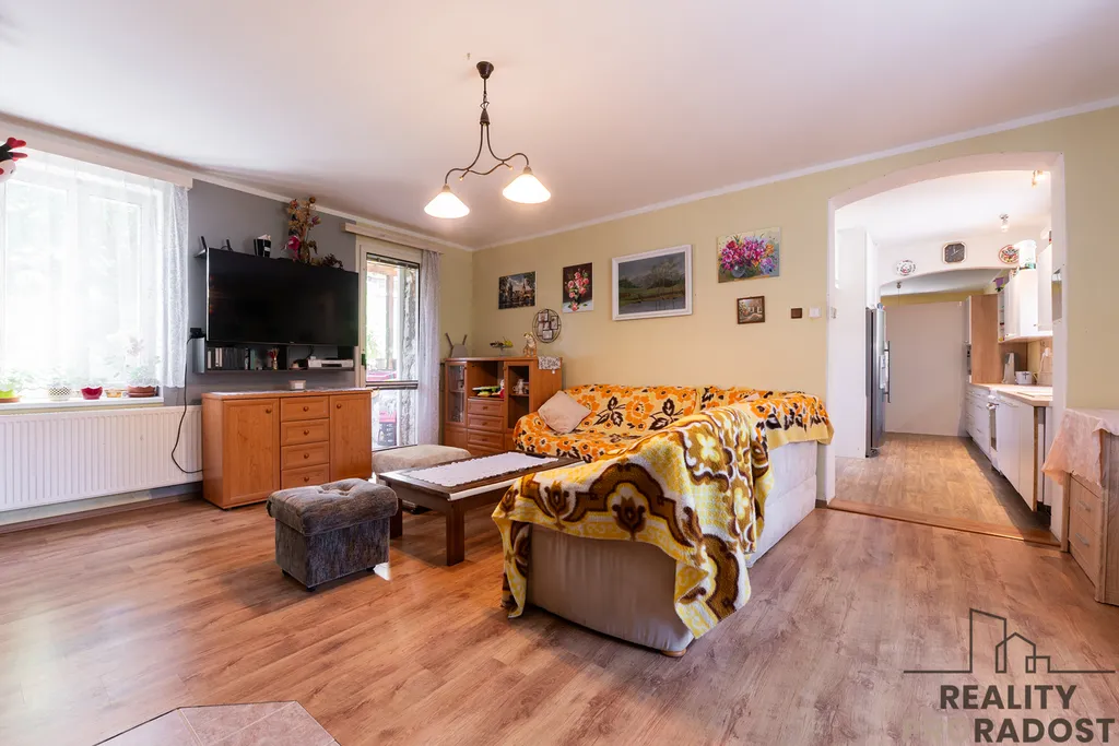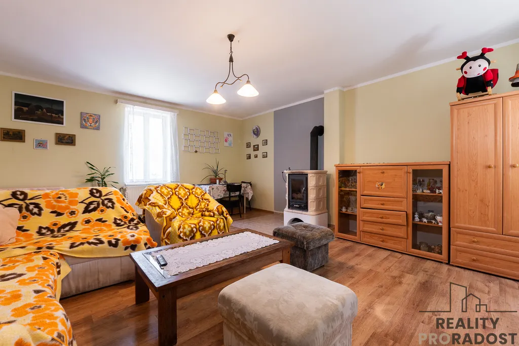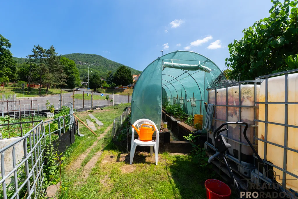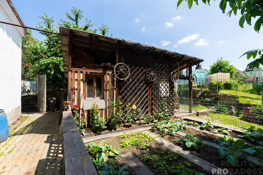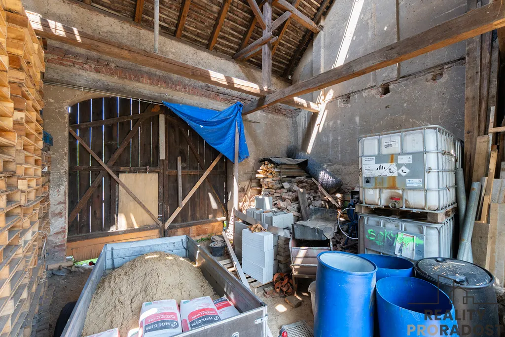Na pozemku dále užitková zahrada, garáž 21 m2, sklep 11 m2 a stodola 40 m2, kterou je možné využít pro podnikání nebo pro uskladnění.