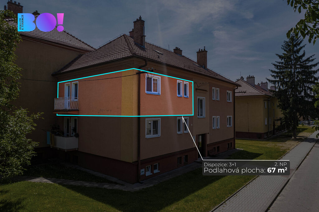 BO! vám nabízí byt o dispozici 3+1 s balkonem o podlahové ploše 67 m2, který se nachází ve 2. patře revitalizovaného cihlového domu v Palackého ulici v Dubňanech nedaleko Hodonína.