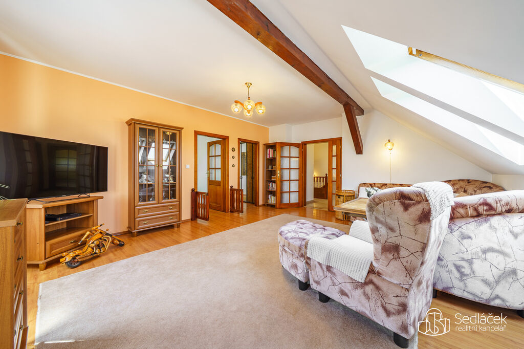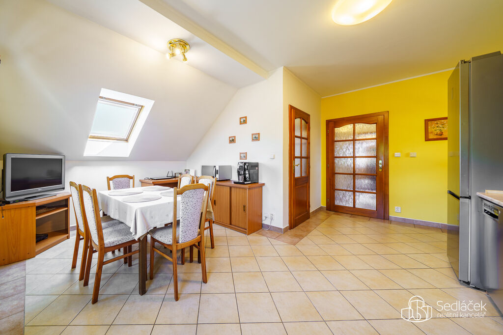 Nabízíme k prodeji prostorný a chytře řešený půdní mezonet 3+1 o užitné ploše 132 m² ve 2. patře menšího bytového domu. Předsíň je od bytu oddělena schodištěm.