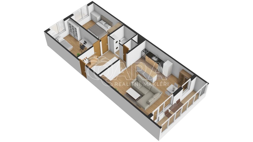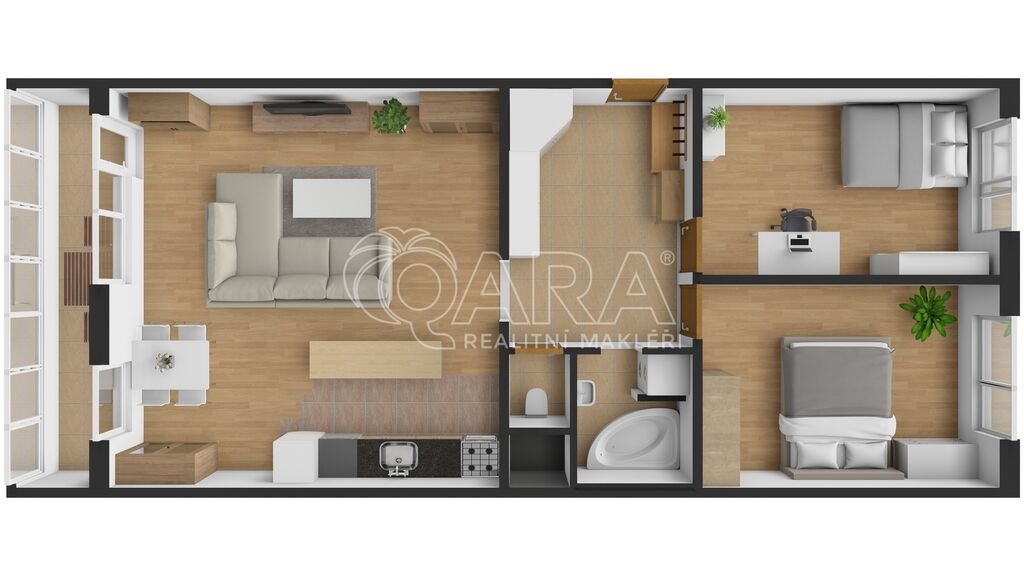 Byt je částečně zařízený nábytkem a vybavený kuchyňskou linkou se spotřebiči, což umožňuje okamžité bydlení bez nutnosti větších investic. V koupelně a na WC je zděné jádro a v chodbě najdete praktické vestavěné skříně. Může to být skvělá příležitost i k okamžitému pronájmu!
