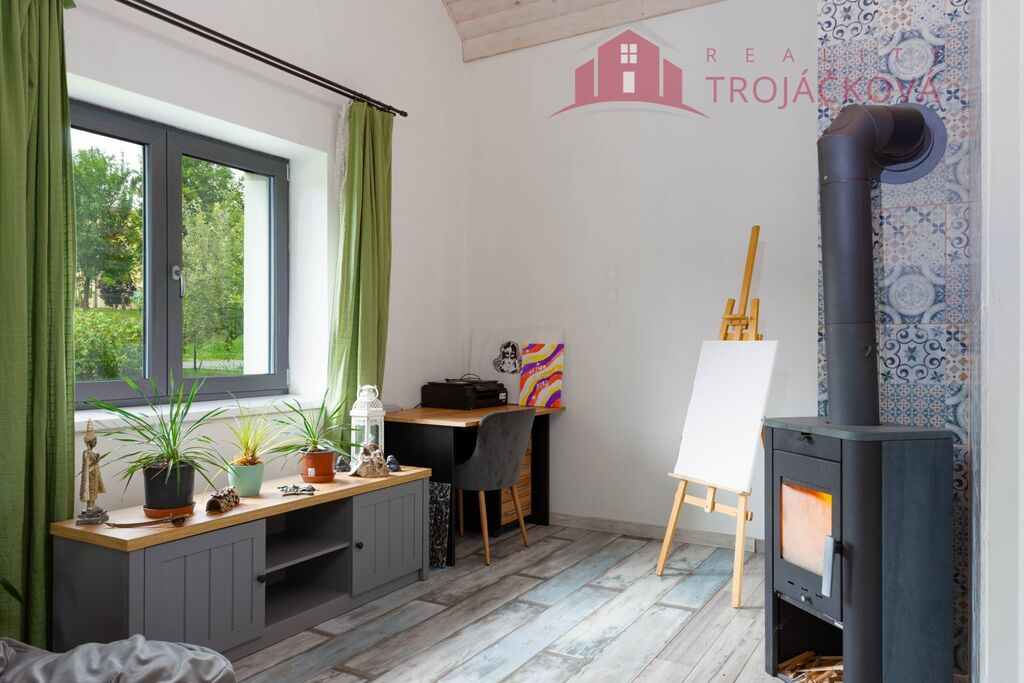 K rodinnému domu náleží také původní hospodářská budova, která však díky kompletní rekonstrukci může sloužit nejen k uskladnění zahradního náčiní, kol a sezónních potřeb, ale také jako kancelář pro práci z domu, letní kuchyň či k občasnému přespání hostů. Součástí hospodářské budovy je prostorný sklípek.