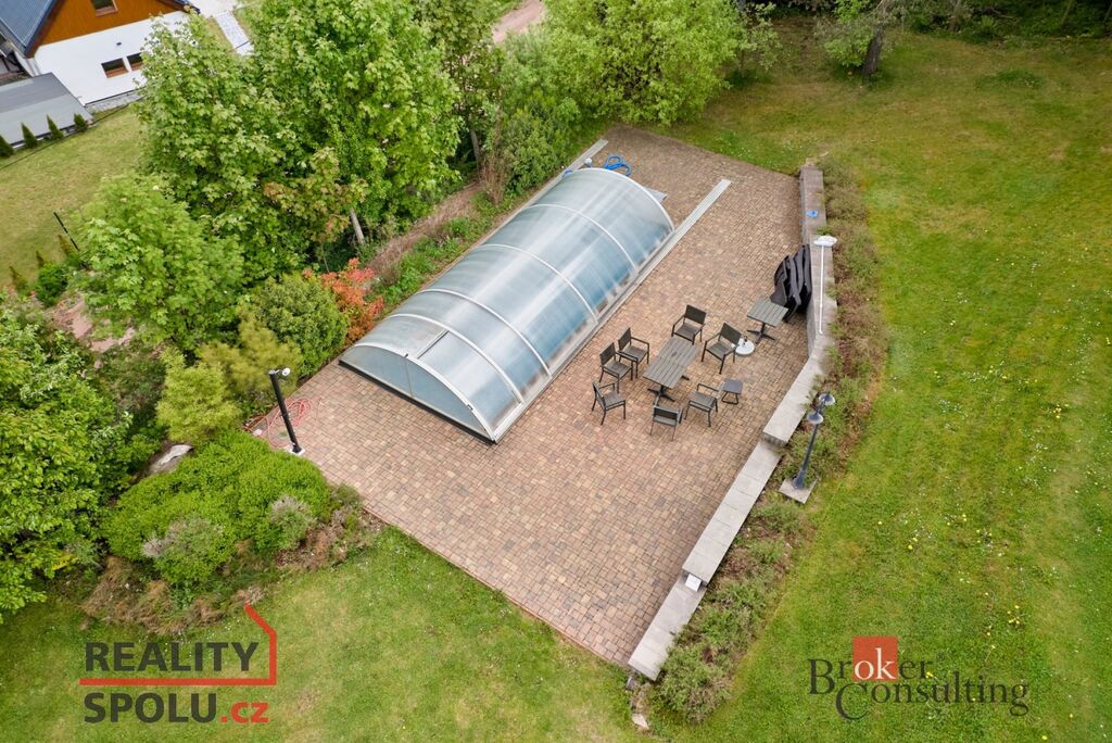 Vytápění zajišťuje moderní tepelné čerpadlo, doplněné automatickým kotlem na tuhá paliva. Vlastní vodní vrt s filtrační jednotkou, čistička odpadních vod, zabezpečovací systém napojený na PCO, 220/380 V – vše profesionálně navrženo a funkční.