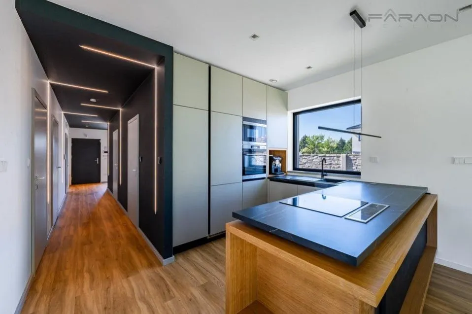 Dům se prodává kompletně vybavený včetně nábytku na míru, sauny, pračky, sušičky, designové kuchyňské linky se všemi zabudovanými spotřebiči a pracovní deskou z přírodního kamene. V celém domě je instalované úsporné LED osvětlení a závěsná svítidla.