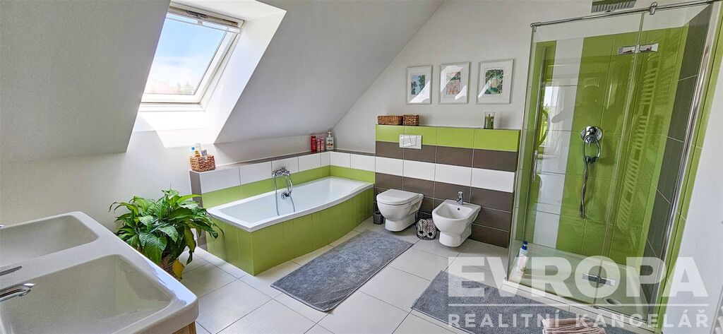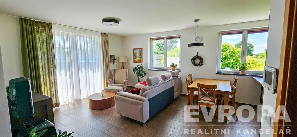 V přízemí domu se nachází chodba, koupelna s toaletou, prostorný prosvětlený obývací pokoj, kuchyň, pokoj/pracovna, technická místnost/komora. V 1. patře se nachází ložnice, dva pokoje a koupelna s toaletou. Z obývacího pokoje vede vstup na zahradu. Součástí domu je prostorná garáž (42 m²). Udržovaná zahrada představuje ideální místo pro odpočinek i chvíle s rodinou.
