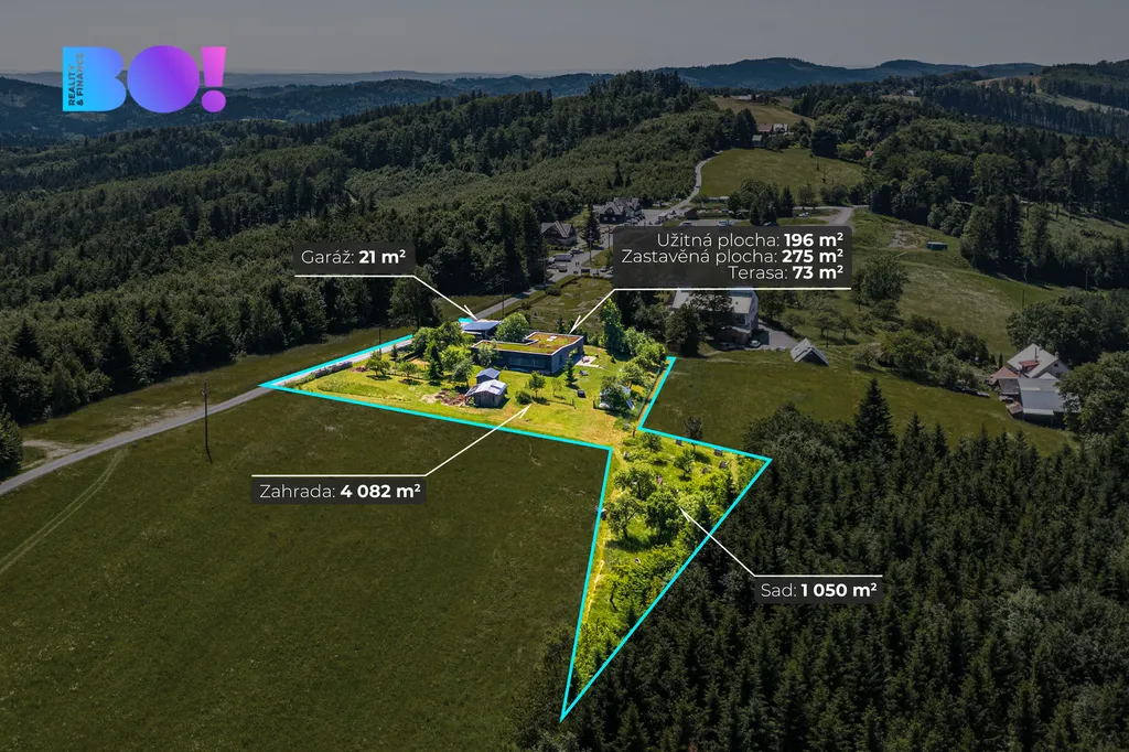 Toužíte po moderním domově uprostřed přírody, s naprostým soukromím a výhledy, které nikdy neomrzí? Právě pro vás je určena tato výjimečná nemovitost nacházející se v katastru obce Rajnochovice - na Trojáku, jednom z nejkrásnějších míst Hostýnských vrchů, nedaleko rozhledny Maruška a lyžařského areálu Troják.