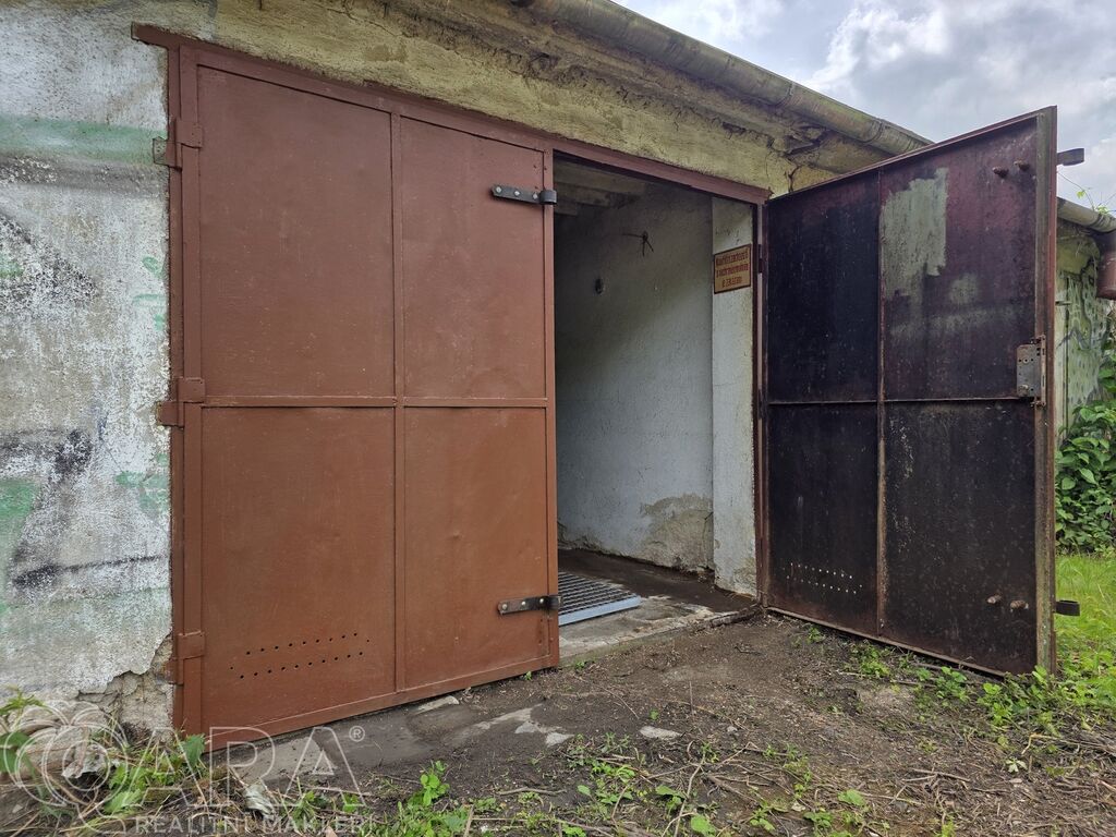 Šířka vrat 240cm i výška vrat 186cm jsou standardních rozměrů a umožňují pohodlný vjezd i novým, stále se zvětšujícím automobilům. Vnitřní rozměry jsou následující- 290cm je šířka garáže a 572cm je délka od zadní stěny po vrata. Výška 209cm v nejnižším bodě a 240cm v nejvyšším bodě v zadní části garáže. Garáž je bez elektřiny. Garáž je historicky propojena s vedlejší garáží a řešení je na domluvě.