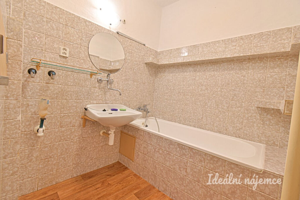 Byt se nabízí částečně zařízený. Kuchyně disponuje kuchyňskou linkou, el. sporákem, digestoří a lednicí. Odkládací plochu lze využívat jako stůl, či pracovní desku. Pokoje jsou nezařízené, prostorné a světlé. V koupelně je vana s umyvadlem. WC je umístěno samostatně. Předsíň je vybavena starší vestavěnou šatní skříní a věšákovou stěnou. Dvě lodžie nabízí výhled jak na pěší zónu, tak do vnitrobloku domu. S ohledem na dispoziční řešení bytu, kdy pokoje jsou neprůchozí, a dostatečně velkému společnému prostoru (hale), vhodné i jako např. studentské spolubydlení pro cca 4 osoby.