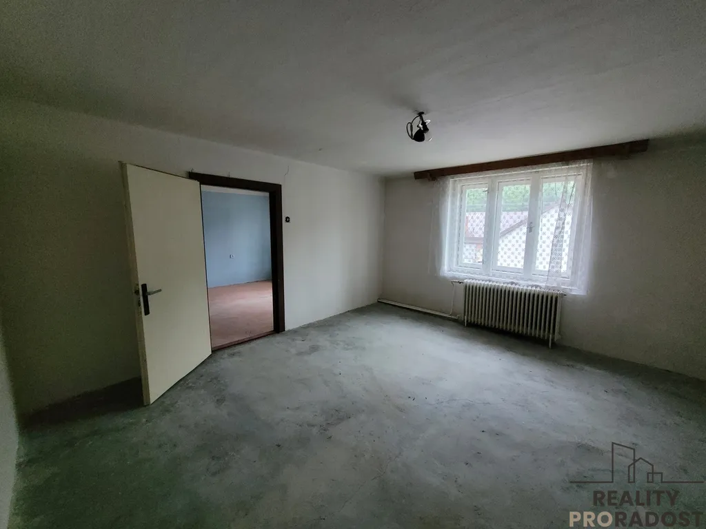 K prodeji nabízíme zajímavou nemovitost. Je ve stavu před rekonstrukcí, nabízí však velký potenciál pro šikovné a podnikavé lidičky. Dům má 8 prostorných pokojů, tím se nabízí možnost zřízení menšího bytového domu, komunitního bydlení či sídla firmy s prostorným bydlením v patře domu. Průjezdem je nemovitost rozdělena na 2 části, levá část je starší ( původní část domu), k té byla v 60. letech minulého století přistavěna pravá část domu. Dům má plechovou střechu z doby přístavby domu. Je napojen na síť elektro, plyn, obecní vodovod i kanalizaci. K domu náleží zahrada s ovocnými vzrostlými stromy. Celková plocha pozemku včetně zastavěné plochy je 658 m2, z toho je 170 m2 skutečně zastavěná plocha, zbytek 488 m2 je zahrada.