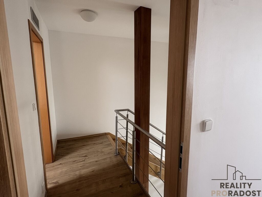 Byt je orientován na severozápadní stranu. Výhodou je krásná zimní terasa s prosklenou střechou. Byt je vybavený kuchyňskou linkou s plynovým sporákem, troubou a lednicí. Koupelna se nachází v patře vedle ložnice. Disponuje vanou a toaletou. Další samostatné WC je umístěno v přízemí bytu. V ložnici je posuvnými dveřmi oddělená šatna s úložnými policemi. Vstupní chodba je taktéž vybavena nábytkem.