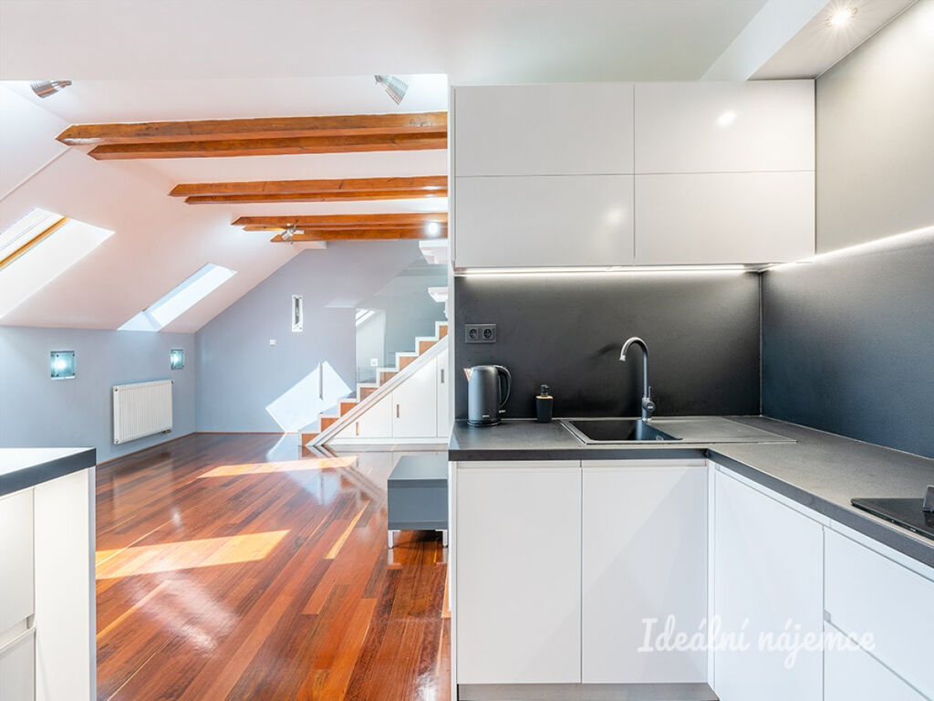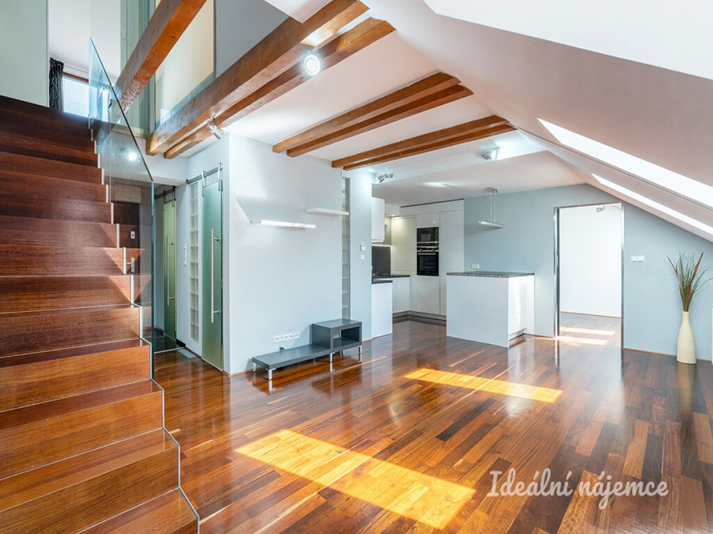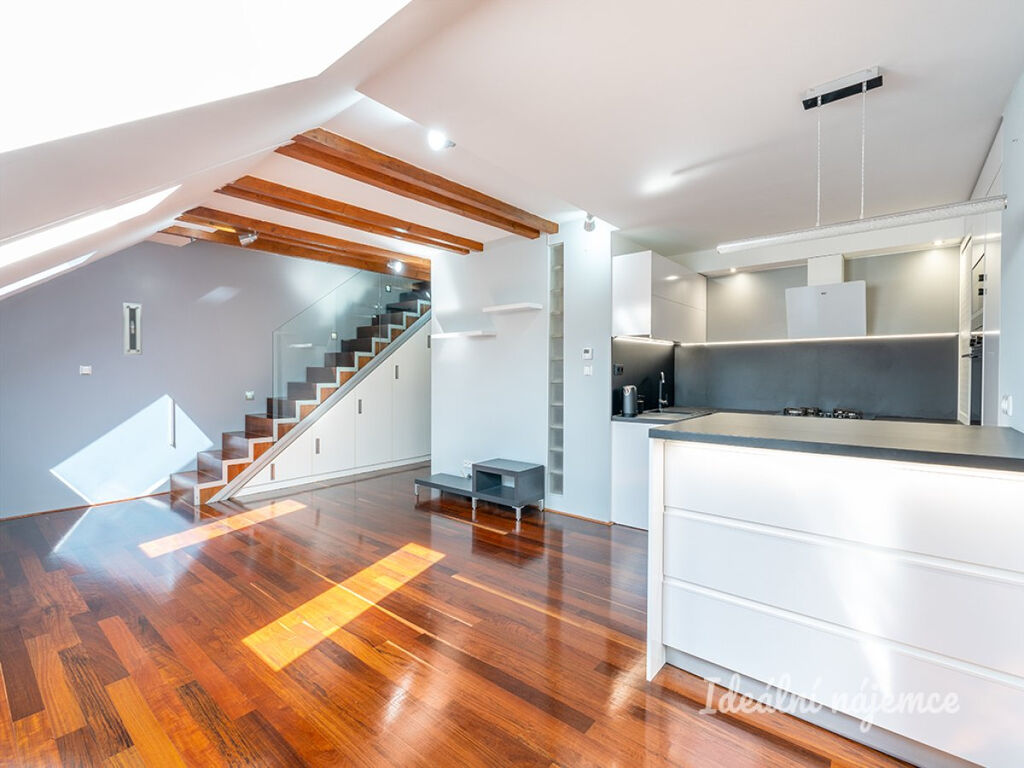 K dlouhodobému podnájmu nabízíme moderně, ve vysokém standardu zrekonstruovaný mezonetový byt 3kk s velkou terasou orientovanou do vnitrobloku.