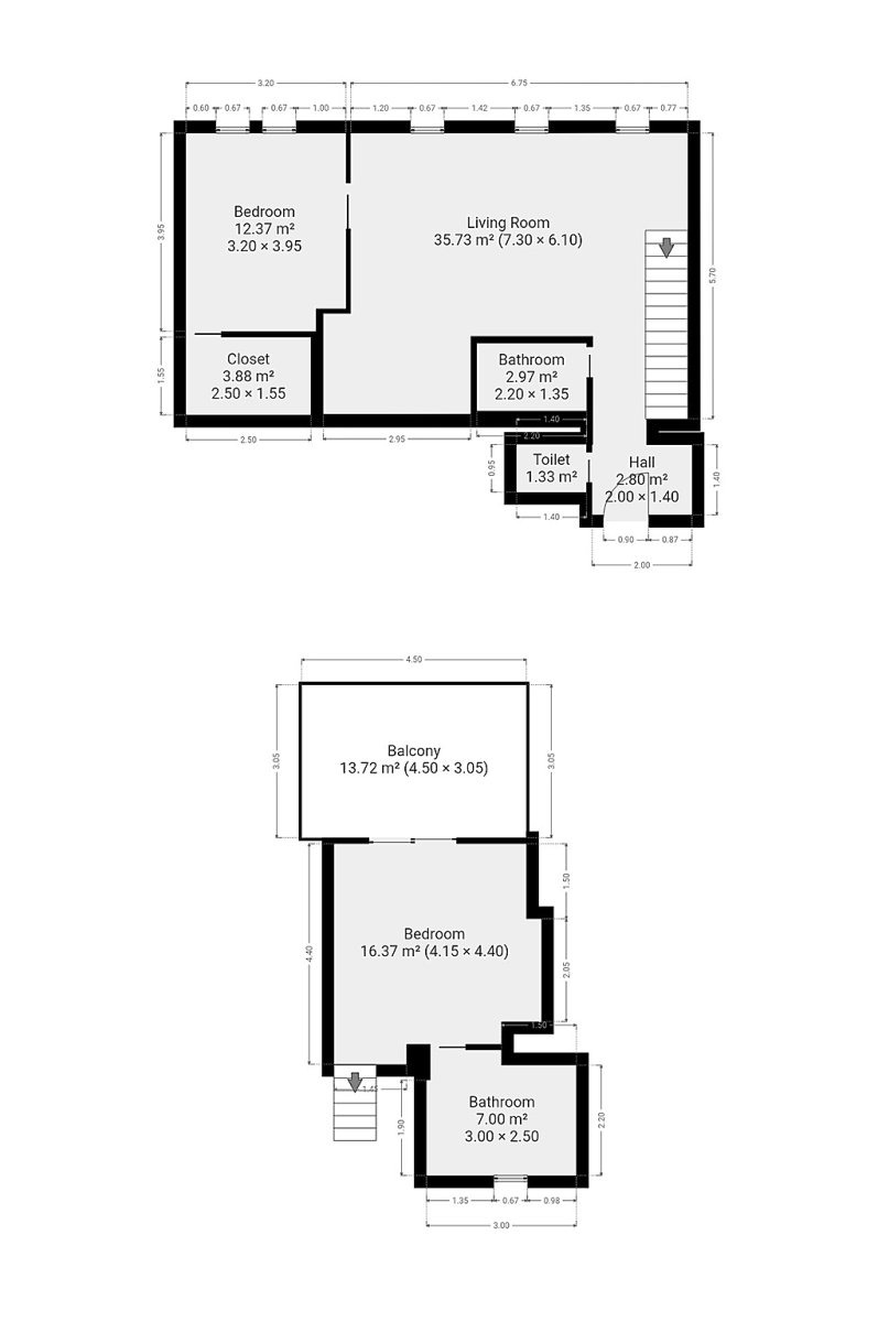 Byt s výměrou 78m2 tvoří vstupní chodba s nadstandartním množstvím úložného prostoru. Obývací pokoj přímo napojený na kuchyňský kout, spodní ložnice a šatna. Ve spodním patře bytu je také koupelna se sprchovým koutem a samostatná toaleta.