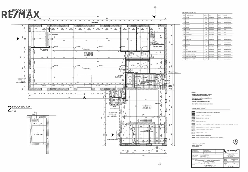výměře 11,1 m2, recepce + vstup z ulice Nádražní o výměře 45 m2, schodiště do 2.NP o výměře 22