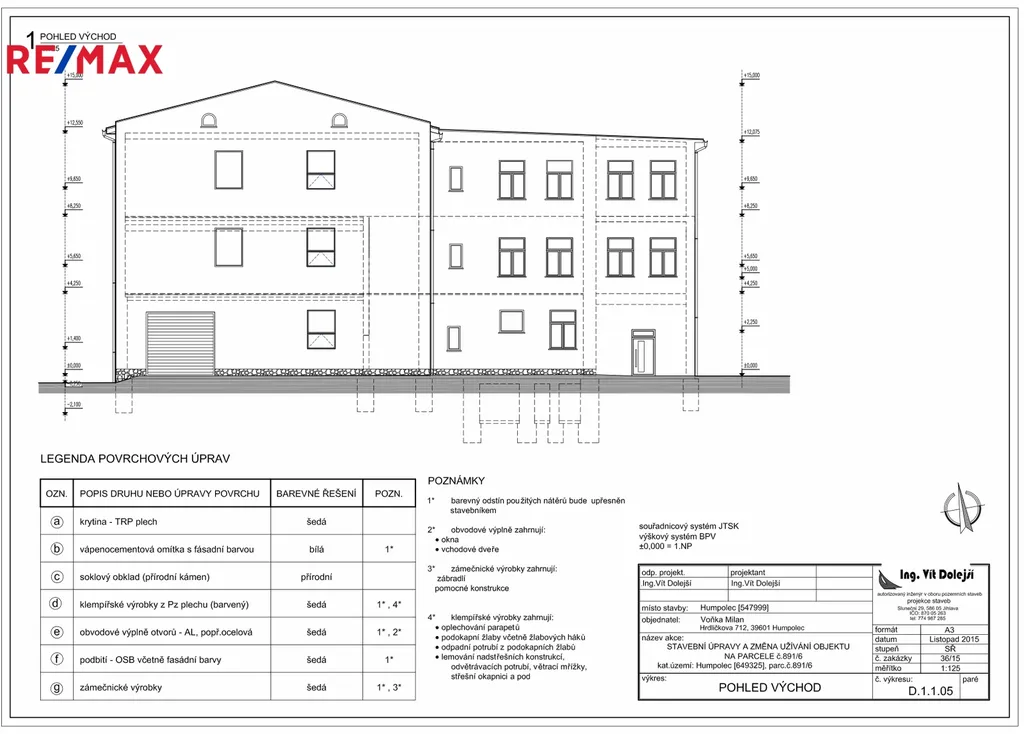 celkové rekonstrukci s nákladním výtahem (nosnost 750 kg) do všech podlaží o celkové užitné ploše 1924,2 m² a o celkové zastavěné výměře 1061 m² v průmyslové zóně v Humpolci (D1 EXIT 90).