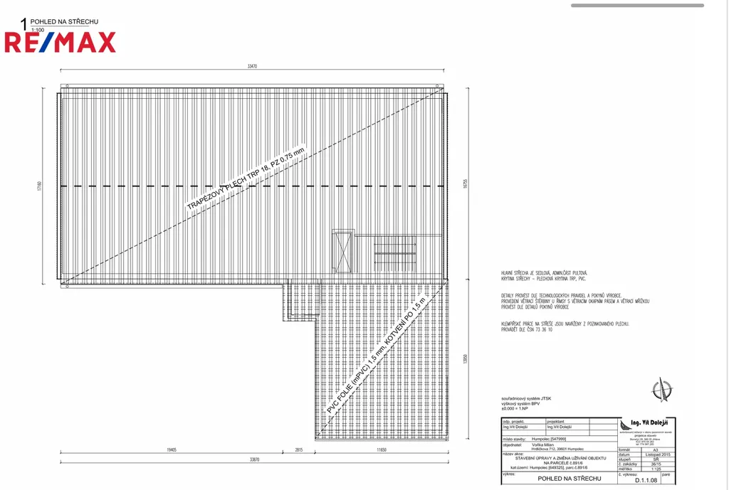 Kompletní projektová dokumentace bude k nahlédnutí při osobní prohlídce na nemovitosti.