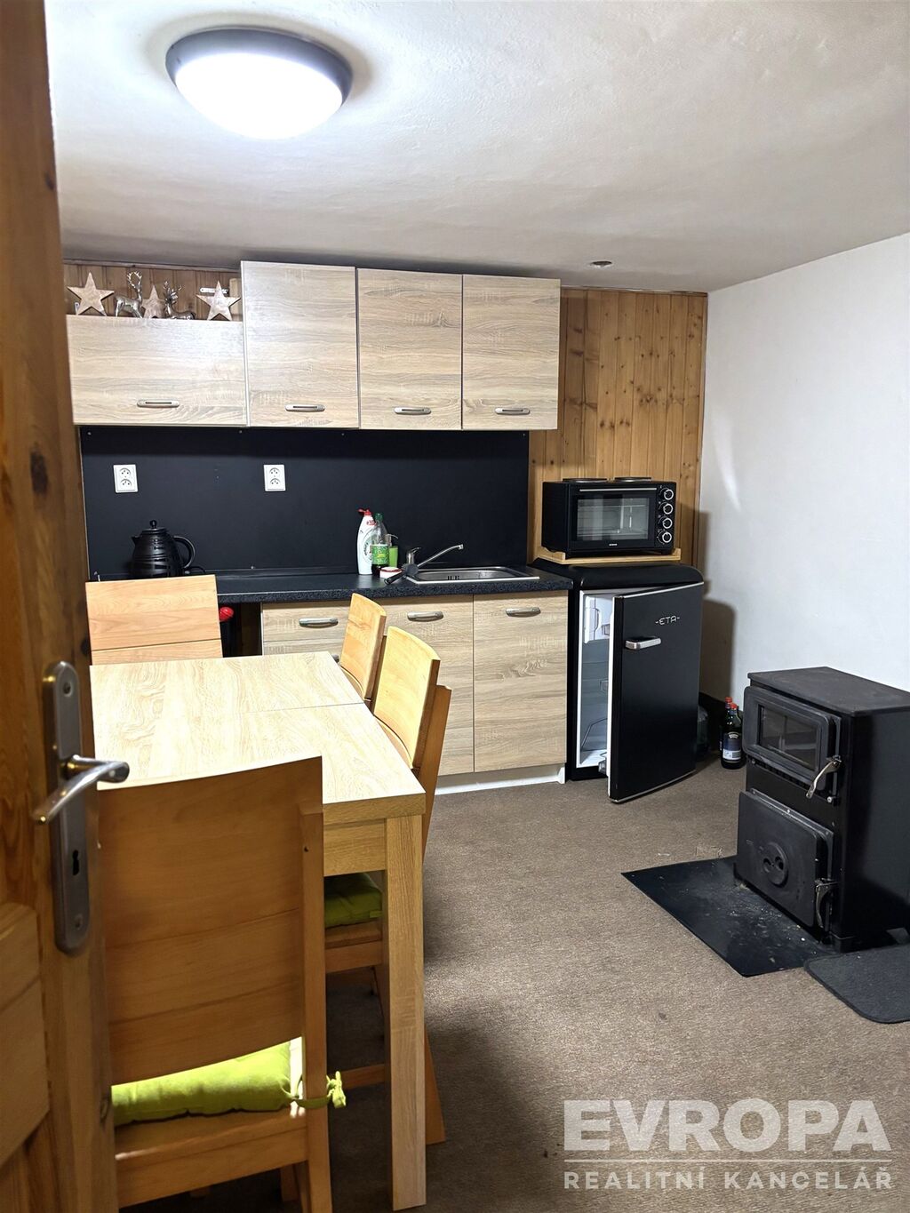 • Rekreační chata s evidenčním číslem – koupelna se sprchovým koutem, samostatné WC, kuchyň, obývací pokoj + 2 ložnice v podkroví