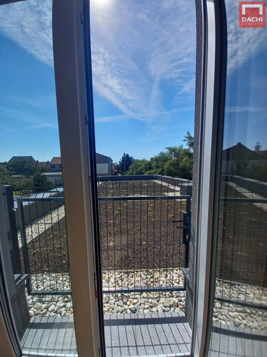 Přímý vstup na terasovou zahradu o ploše 70 m se zelenou extenzivní střechou nad garáží