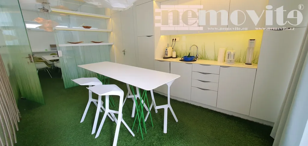 Exkluzivně nabízíme na pronájem kompletně vybavenou luxusní kancelář - Jesenice, Praha západ, možnost pronájmu jednoho parkovacího místa v garážích pod domem, možnost okamžitého používání. Přízemní elektronicky zabezpečená bezbariérová kancelář je vybavena kuchyňkou, jídelním stolem se židlemi, konferenčním stolem se židlemi, jedno oddělené manažerské místo a dvě místa pro pracovníky, 2x klimatizace, myčka, datový projektor s plátnem, lednice, mikrovlnka, toaleta, cena je včetně kompletního vybavení. Bezproblémové parkování u domu v ulici. Vážným zájemcům doporučujeme prohlídku.