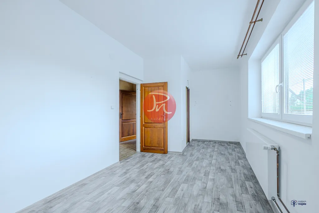 Každá jednotka má dispozici 3+1, tedy tři pokoje, kuchyni a koupelnu s toaletou. Obytné části jsou zcela oddělené, což zaručuje soukromí a flexibilitu. Podkrovní pokoj navíc může sloužit jako pracovna, ateliér, knihovna nebo klidná zóna na relax. Celý dům je v původním stavu a čeká na rekonstrukci – vy si tak vše přizpůsobíte přesně podle svých potřeb.