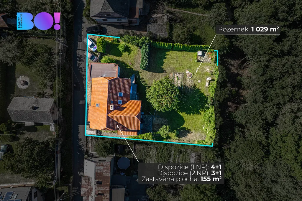 Dispozice 4+1 v přízemí a 3+1 v patře nabízí dostatek prostoru pro rodinu, prostory pro relax, domácí pracovnu nebo pokoj pro hosty. Okouzlí vás prostorná zahrada o ploše 874 m² – mírný svah, ovocné stromy, možnost bazénu, altánku i vlastní zeleninové zahrádky.