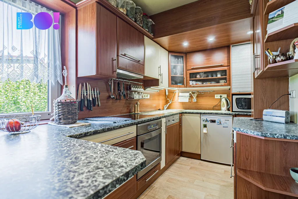 Dům je po částečné rekonstrukci, celopodsklepený, s garáží i dalším parkovacím stáním, vytápěný plynovým kondenzačním kotlem a krbovými kamny, které domovu dodávají teplo i útulnost.