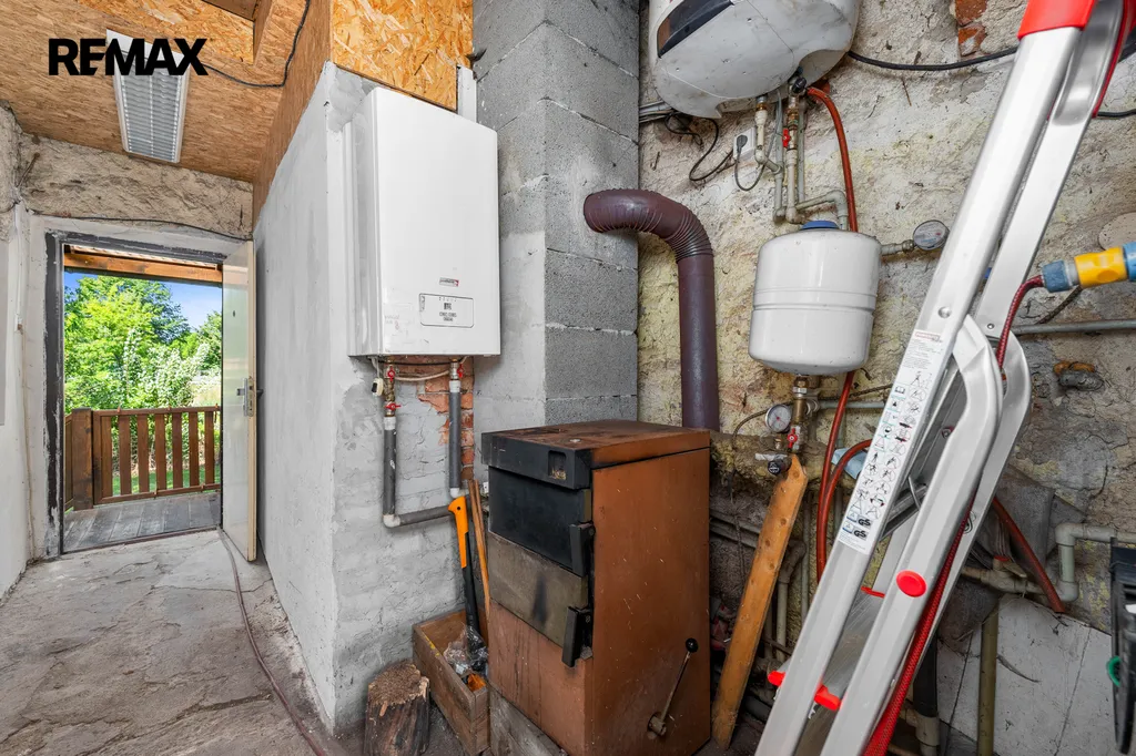 Nabízený rodinný dům je napojen na obecní vodovod. Vytápění domu vč. TUV je zajištěno pomocí ústředního topení s plynovým kotlem i kotlem na tuhá paliva. Garsoniéra je vytápěna elektrokotlem, ohřev vody zajišťuje elektrický bojler. Odpady jsou svedeny do obecní jímky, elektřina 220/380V. Na rodinný dům z jižní strany navazuje zahrada, která není součástí prodeje.