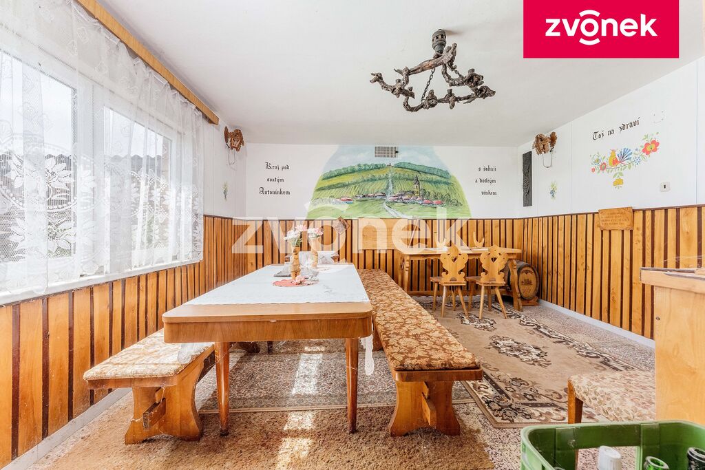 Prodej prostorného rodinného domu s vinným sklepem, zahradou a stodolou v srdci jihomoravské vinařské tradice – to vše nabízí tato jedinečná nemovitost v malebné obci Blatnice pod Svatým Antonínkem. Zděný dům s průjezdem do dvora poskytuje v přízemí chodbu, kuchyni, obývací pokoj, dvě místnosti bývalého výminku, koupelnu a toaletu, v patře pak najdete dva další pokoje a útulnou zimní zahradu. Ve dvoře navazují hospodářské stavby a dílna, a především samostatná budova vinného sklepa s velkou společenskou místností v patře a tradičním sklepem v suterénu – ideální místo pro posezení s přáteli nebo rodinné oslavy. Na rozlehlé zahradě za domem je dostatek prostoru pro pěstování vinné révy, ovocných stromů či zeleniny, nechybí ani samostatná stodola. Možnost prodeje včetně kompletního vybavení. Nemovitost je ideální volbou pro milovníky venkovského života, rodiny s dětmi i drobné vinaře, kteří si chtějí přizpůsobit bydlení a hospodářské zázemí dle vlastních představ. Blatnice je živá obec s bohatým kulturním děním a skvělou dopravní dostupností – do Veselí nad Moravou dojedete za 7 minut, do Uherského Hradiště za 20 minut. Náš realitní specialista Mgr. Miroslav Zvonek vám zajistí osobní prohlídku toho zajímavého rodinného domu.