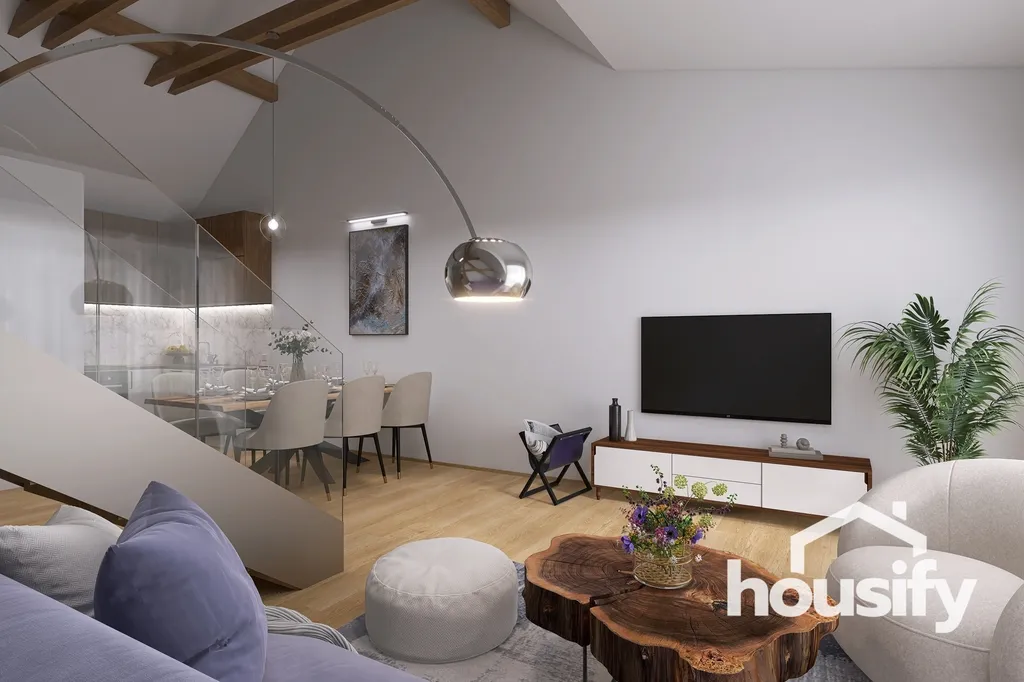 - Prosvětlený loft s přiznanými trámy