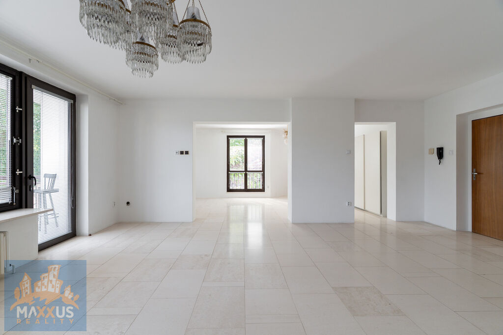 Pronájem nadčasové dvougenerační vily o dispozici 11+2 se zahradní terasou a garáží. Vila se nachází v oblíbené a vyhledávané lokalitě Prahy 4 – Lhotka. Vila se zastavěnou plochou 236 m2 leží na pozemku s rozlohou 1044 m2. Na pozemku zahradou se vzrostlou a udržovanou vegetací. V blízkosti příroda a skvělá dopravní dostupnost - tram, bus, v okolí také mezinárodní škola. Dům o velkorysé užitné ploše 436 m2 se rozkládá ve třech podlaží. V suterénu domu se nachází hala se schodištěm, ze kterého se vchází do kotelny/prádelny, garáže, sklepu a obytné části. Z obytné části je vstup do vybavené kuchyně a ložnice s vlastní šatnou a koupelnou. K obývací místnosti náleží zahradní terasa 13 m2 ze které je dále vstup do zahrady. V přízemí domu se nachází vstupní schodišťová hala (komunikační uzel) s předsíní a prostorným obývacím pokojem vybaveným krbem na dřevo. Z obývacího pokoje dále vstup do ložnice se šatnou, koupelnou, samostatnou toaletou a pracovnou. Dále je zde spotřebiči vybavená kuchyně o rozloze 28,9 m2. V přízemí domu je samostatný vchod ze vstupní haly do hostinského pokoj s vlastní šatnou i koupelnou. Patro domu je dispozičně řešeno stejně jako přízemí. V podkroví se nachází ateliér vhodný pro pracovnu a úložné prostory. Parkování je možné v garáži či na pozemku. Energie se převádí na nájemce (měsíční odhad za celý dům okolo 12.000,- Kč/měsíc). Dům je volný k nastěhování ihned. Plánky domu jsou na konci galerie. PENB nebyl dodán, a tudíž třída energetické náročnosti je dle vyhlášky 148/2000 Sb. uvedena jako G. Makléř doporučuje prohlídku.