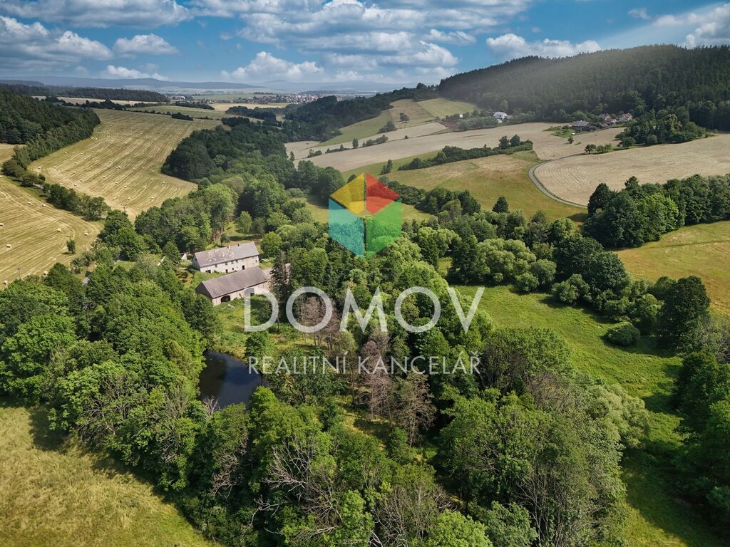 Dovolujeme si Vám nabídnout jedinečný soubor hospodářských budov s navazujícími pozemky o celkové výměře 7 287 m², situovaný na samotě nedaleko obce Jívina u Hořovic, v okrese Beroun.