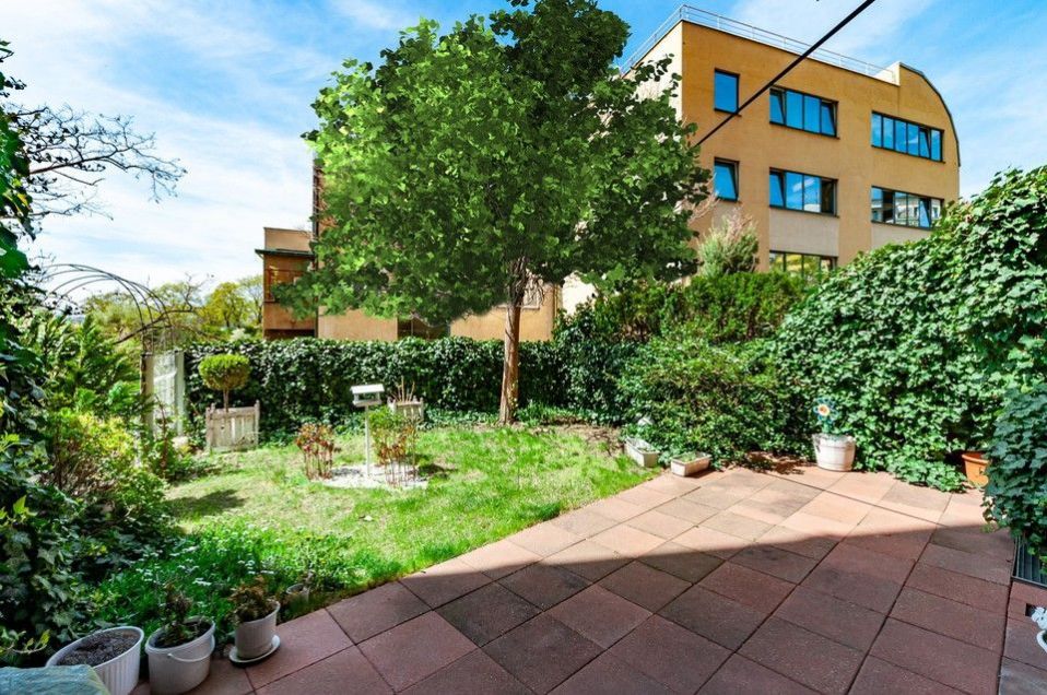 Prodej prostorného bytu 2+kk s terasou a předzahrádkou se vzrostlou zelení, s garážovým stáním a sklepem v atraktivní a klidné Rezidenci Zvonařka na Královských Vinohradech s recepcí, 24 hod ostrahou, vnitřním bazénem, terasou s neopakovatelnými výhledy na Prahu a privátním upraveným parkem ve vnitrobloku.