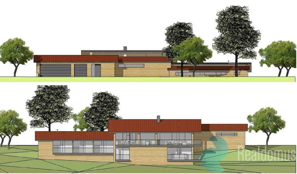 Pro pozemek bylo vydáno Městským úřadem v Hluboké nad Vltavou stavební povolení pro výstavbu rodinného domu. Část projektové dokumentace pro stavební povolení naleznete v této inzertní informaci. Navrhovaná stavba je koncipovaná jako jediný dvoupodlažní objekt, který v daném prostředí respektuje celkový ráz krajiny, výhledy na jezero a okolní přírodní prostředí, které jsou významnou přidanou hodnotou místa.
