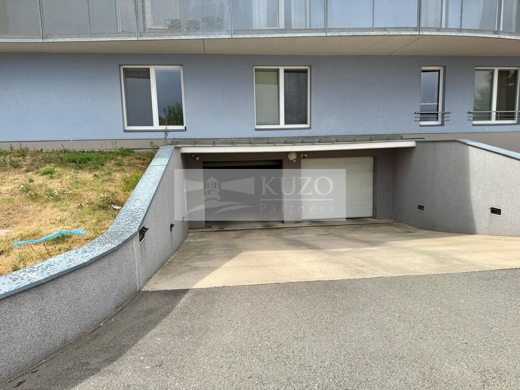 K bytu náleží garážové parkovací stání a venkovní parkovací plocha pro dva automobily – celkem tedy až tři parkovací místa.