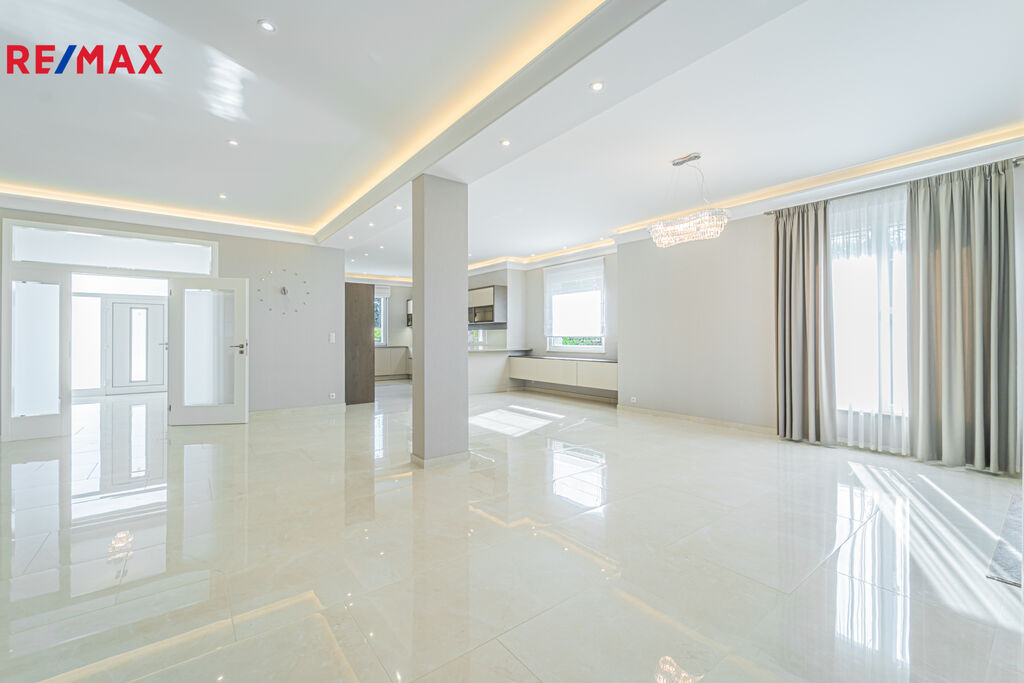 Dominantou domu je prostorný obývací pokoj s kuchyňským koutem o velikosti 91 m², který poskytuje dostatek prostoru pro setkání celé rodiny i přátel. Všechny ložnice jsou samostatné, takže každý člen rodiny má své soukromí.