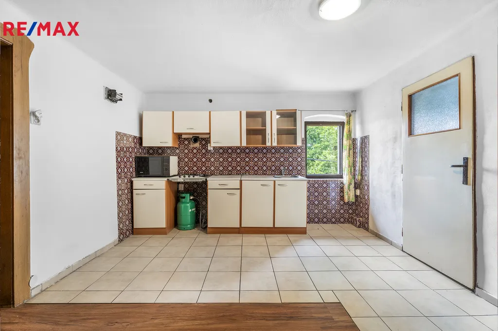 • Stodolu s průjezdem na horní zahradu a s prostory, které nabízí možnosti pro další využití