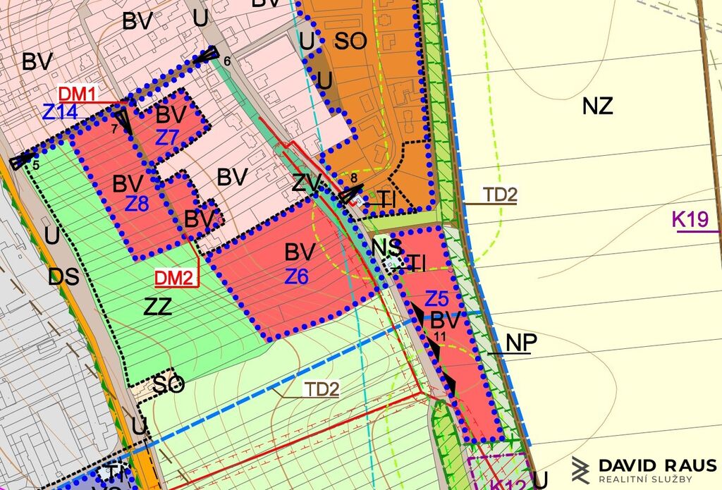 Dle platného Územního plánu obce Medlov spadá cca 9300 m² z nabízeného pozemku do ploch určených pro bydlení venkovského typu BV a cca 7000 m² do ploch zeleně soukromé a vyhrazené (ZZ).