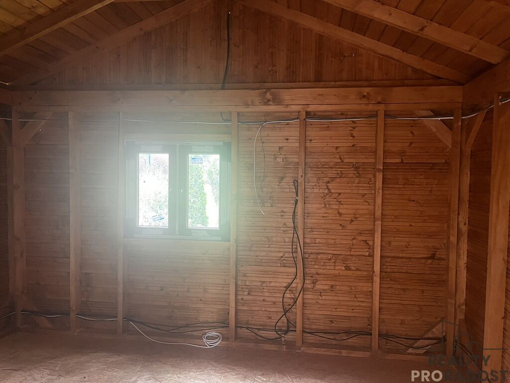 Hledáte klidné a příjemné místo k bydlení?? Na pozemku o velikosti cca 1000 m2 je rozestavěná dřevostavba o dispozici 2+1 , obývací pokoj s kuchyní , koupelna s přípravou na sprchový kout i vanu, technická místnost a ložnice. Stavba nemá základovou desku a je na betonových patkách. Okna jsou dřevěné dvojskla, na střeše je položen šindel ( je třeba dodat plech). Nemovitost je již napojena na všechny inženýrské síťe a to veřejný vodovod, kanalizaci a elektřinu. Na pozemku je rovněž plyn. Předmětem prodeje je samozřejmě vydané stavební povolení (2025)projekt , geometrický plán. Zbývá tedy jen domeček dostavět a zkolaudovat.
