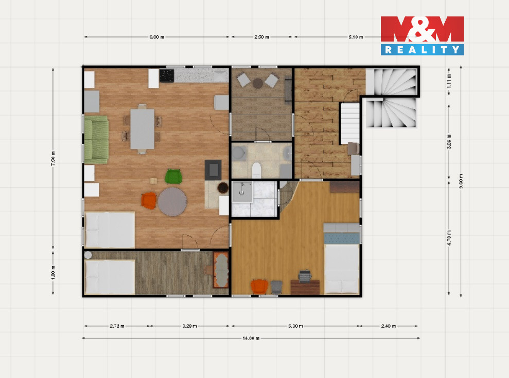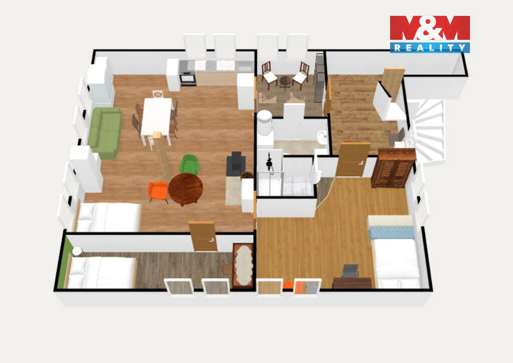 Nabízíme prostorný rodinný dům z roku 1910, který prošel částečnými úpravami a je připraven k okamžitému užívání. V přízemí se nachází obývací pokoj s krbem, dvě ložnice, kuchyň a menší koupelna. V patře je velký obývací pokoj s kuchyňskou linkou, jídelním koutem a krbem, dvě ložnice, z nichž jedna má vlastní koupelnu se sprchovým koutem. Prostorná půda a sklep nabízejí další možnosti využití.