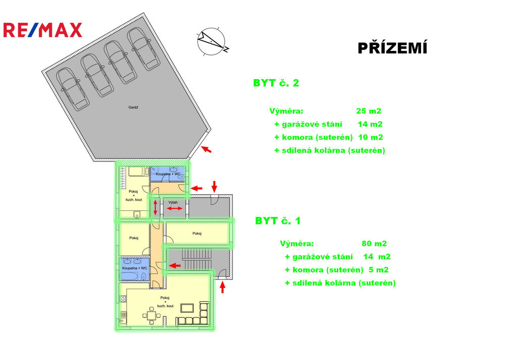 Nabízím k pronájmu nadstandardní byt o dispozici 3+kk (byt č. 1, přízemí), s celkovou užitnou plochou 80 m² a vlastním garážovým stáním, situovaný v moderní a architektonicky výrazné bytové vile Lidická v Lanškrouně. Budova i byt splňují vysoké nároky na komfort, bezpečnost a energetickou úspornost. K bytu náleží vlastní komora (5,4 m²) a garážové stání (14 m²) v garážích.